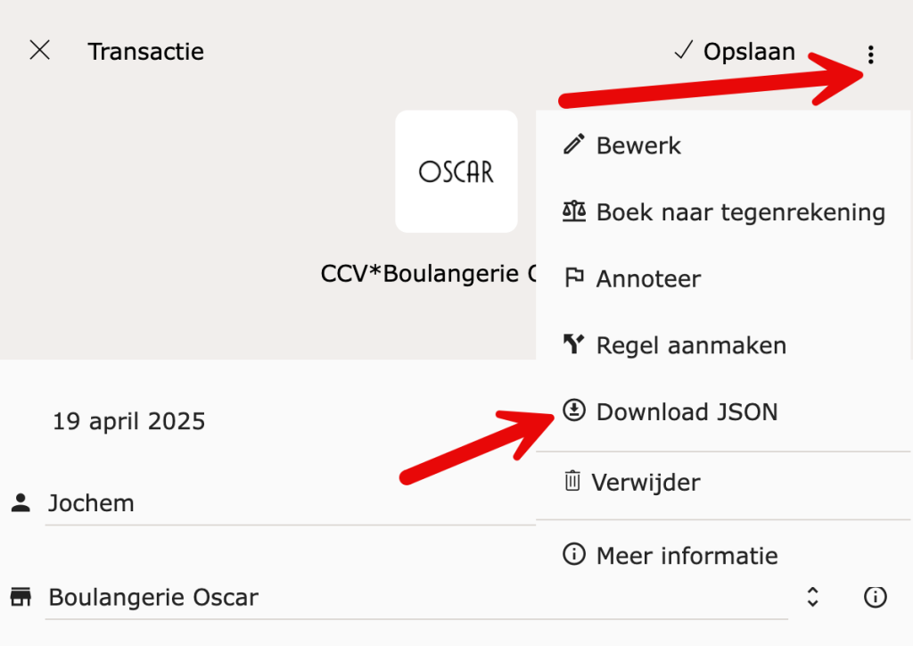 • Klik op de transactie en kies in het detailvenster voor “Download JSON”.