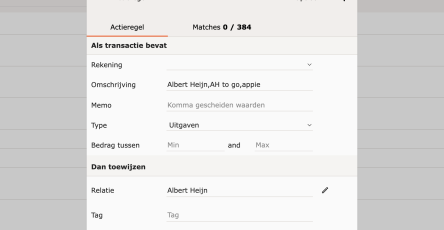 Van een rubriek kun je het type transactie (Inkomsten of Uitgaven) nu automatisch laten bepalen. Deze wordt daarmee automatisch bij de inkomsten of uitgaven geteld op basis van je ingestelde budget en werkelijke inkomsten en uitgaven.